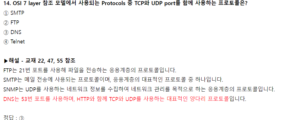 SNMP(Simple Network Manegement Protocol) : 간이 망 관리 프로토콜로 네트워크 장비를 관리하기 위한 UDP의 응용계층 프로토콜