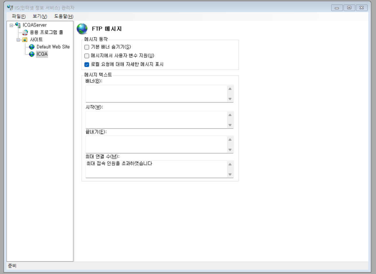 사이트 - ICQA(추가한거) - FTP IPv4 주소및 도메인 제한 - 우클릭 - 거부항목 추가