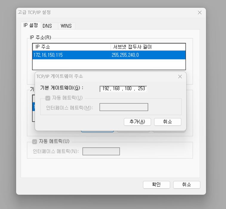 게이트웨이 추가 : (게이트웨이 설정)